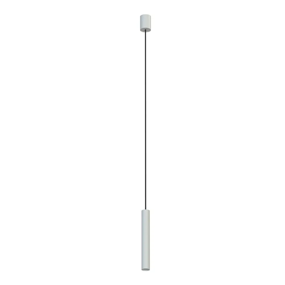 Schmale Pendelleuchte aus Metall in hellem Grau