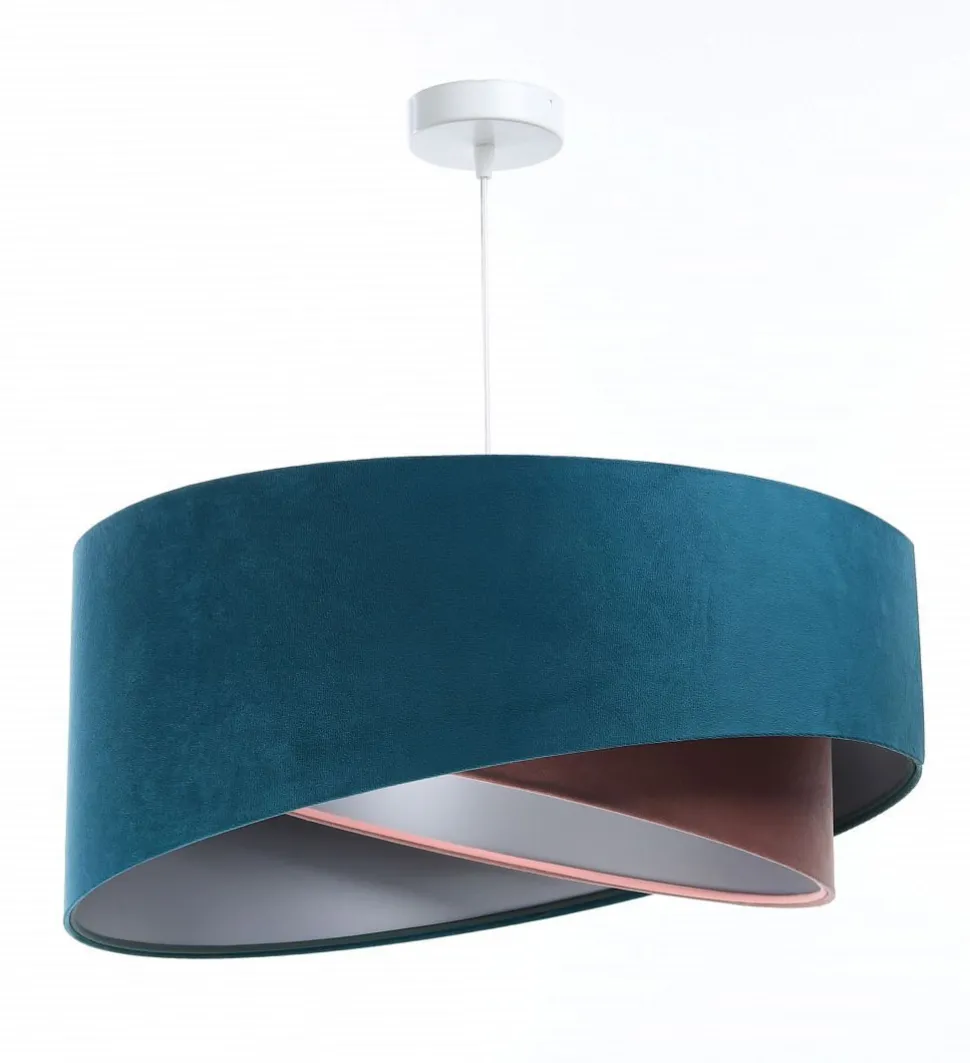 Hängelampe rund Ø 50 cm E27 Türkis Rosa Silber Stoffschirm