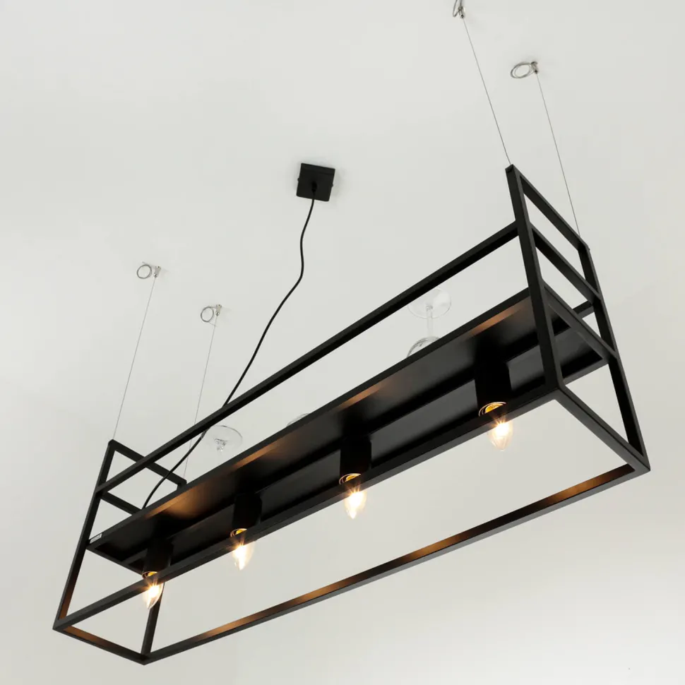 Große Pendelleuchte mit Ablage und Rahmen Schirm aus Metall