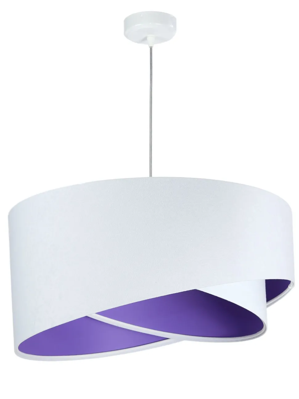 Außen besteht der Schirm aus weißem Microfaser-Stoff in Velours-Optik (Durch die Oberflächen kann der Schirm je nach Licht heller oder dunkler wirken), was einen samtigen Effekt erzeugt; innen setzt kräftiges Lila einen farblichen Akzent