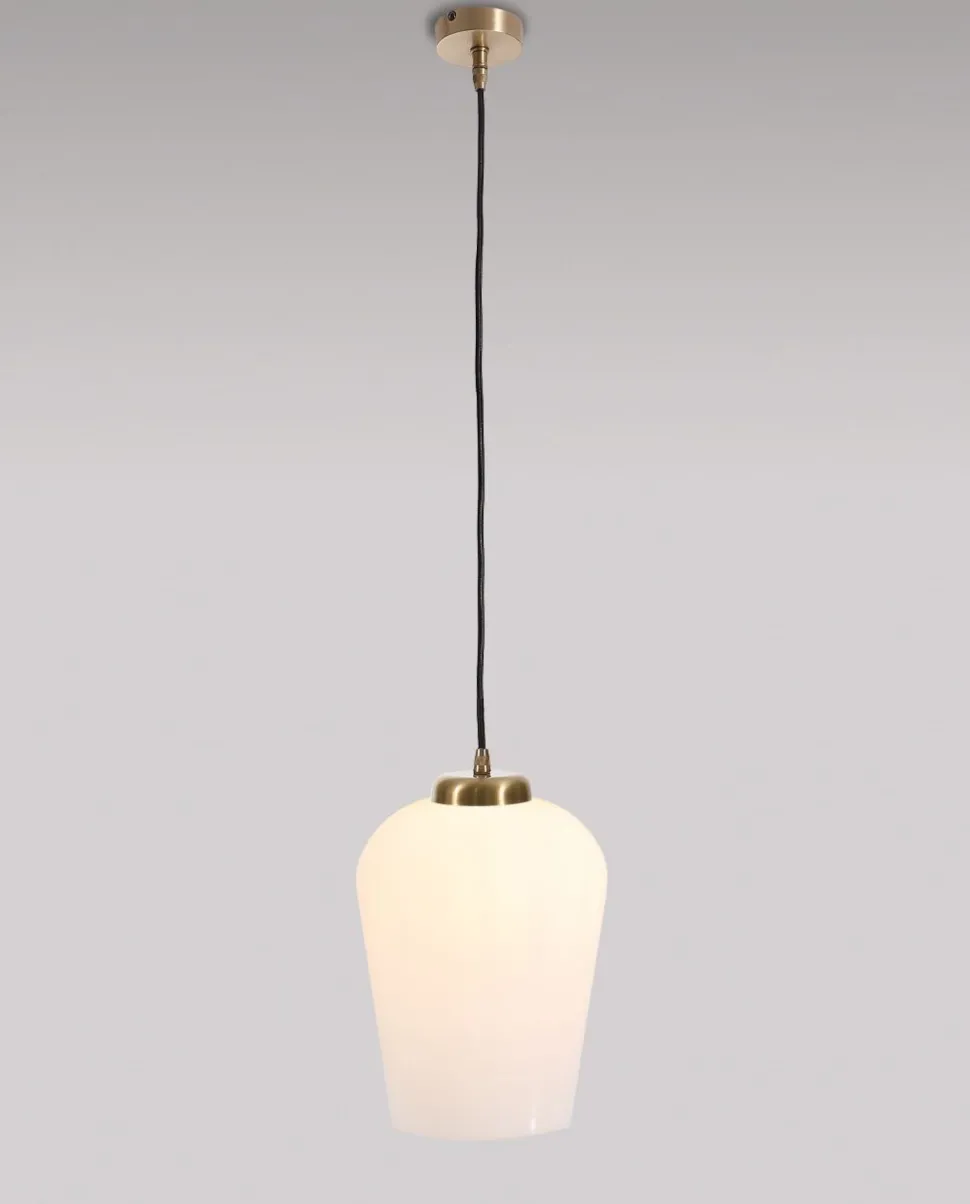 Elegante Messing Pendelleuchte mit Schirm aus satiniertem Glas