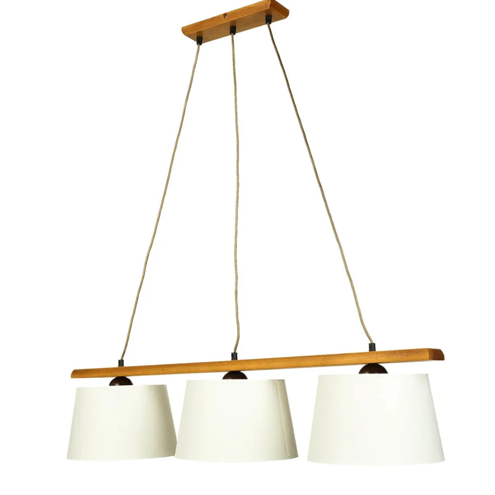 Mit der großen Hängelampe Beverely setzen Sie wohnliche Akzente in Ihrem Wohnzimmer oder im Esszimmer! Das natürliche Design aus Echtholz und gemütlichen Stoffschirmen passt in verschiedenste Einrichtungsstile. Die blendarme Lichtstreuung sorgt für ein angenehmes Flair Zuhause. Dank großer Hängetiefe ist die Pendelleuchte auch ideal für Räume mit hohen Decken geeignet!