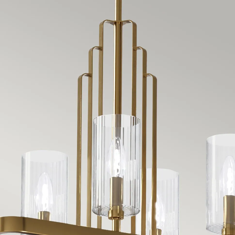 Das geradlinige Design ist antiken Art Déco Leuchten nachempfunden, was der Hängelampe einen nostalgischen Charakter verleiht