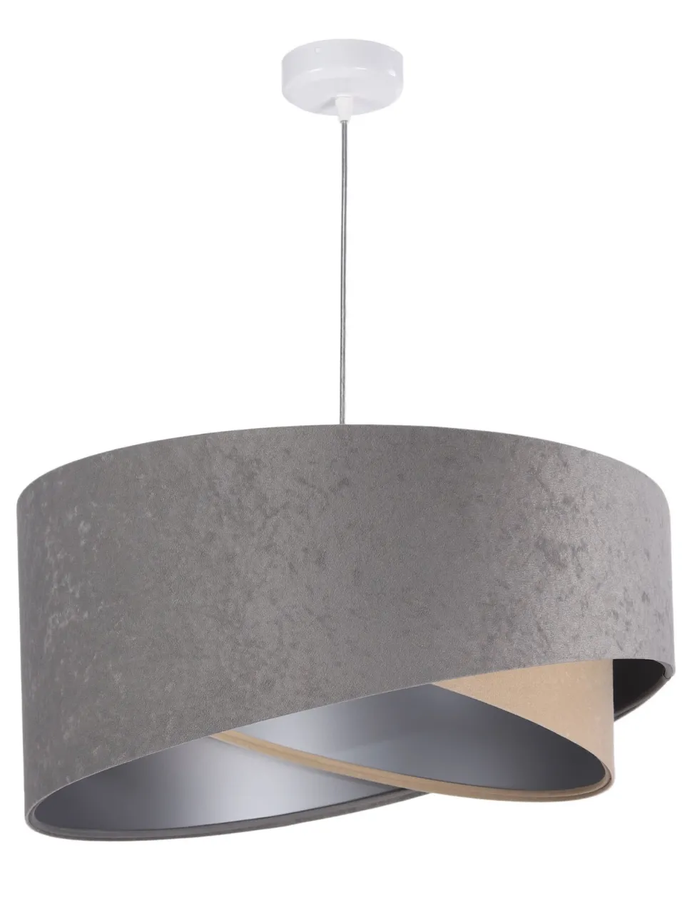 Das Licht scheint auf die in Silber gehaltene Innenseite des Schirms, was für eine schimmernde Lichtwirkung sorgt