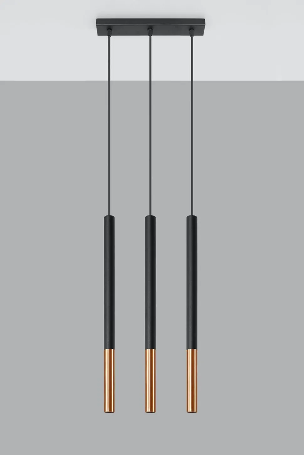 Moderne Pendelleuchte in Schwarz und Kupfer