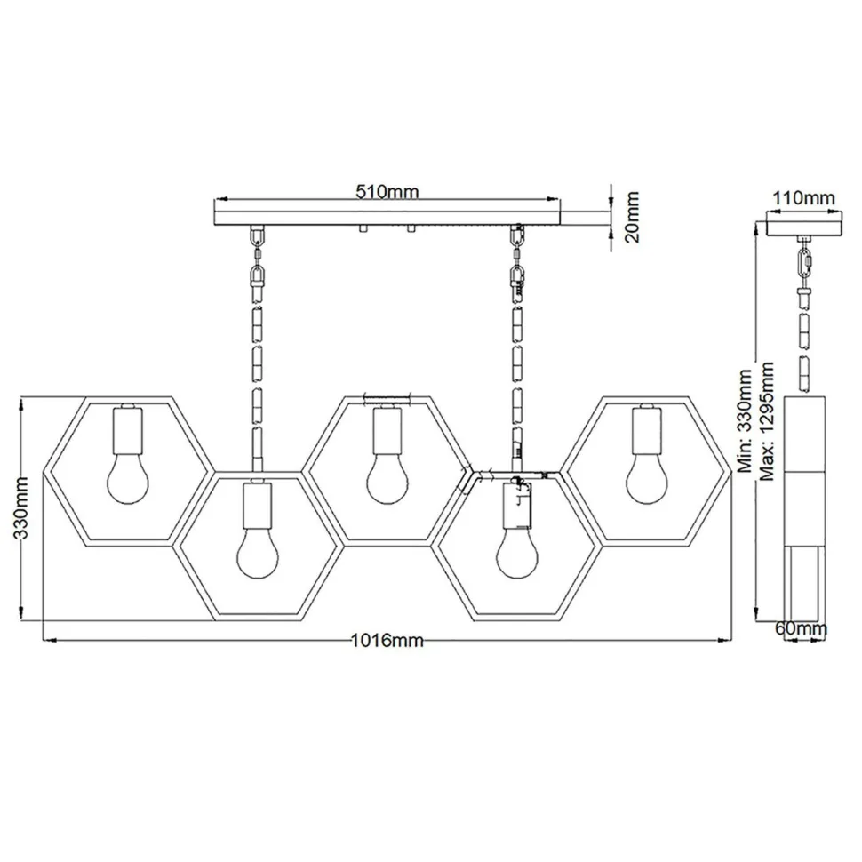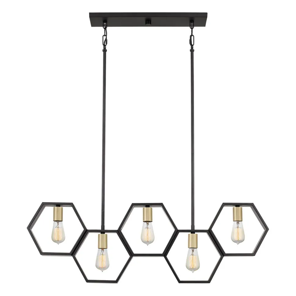 Die hexagonalen Schirme setzten einen außergewöhnlichen Akzent, der aus der langen Hängelampe einen besonderen Blickfang macht