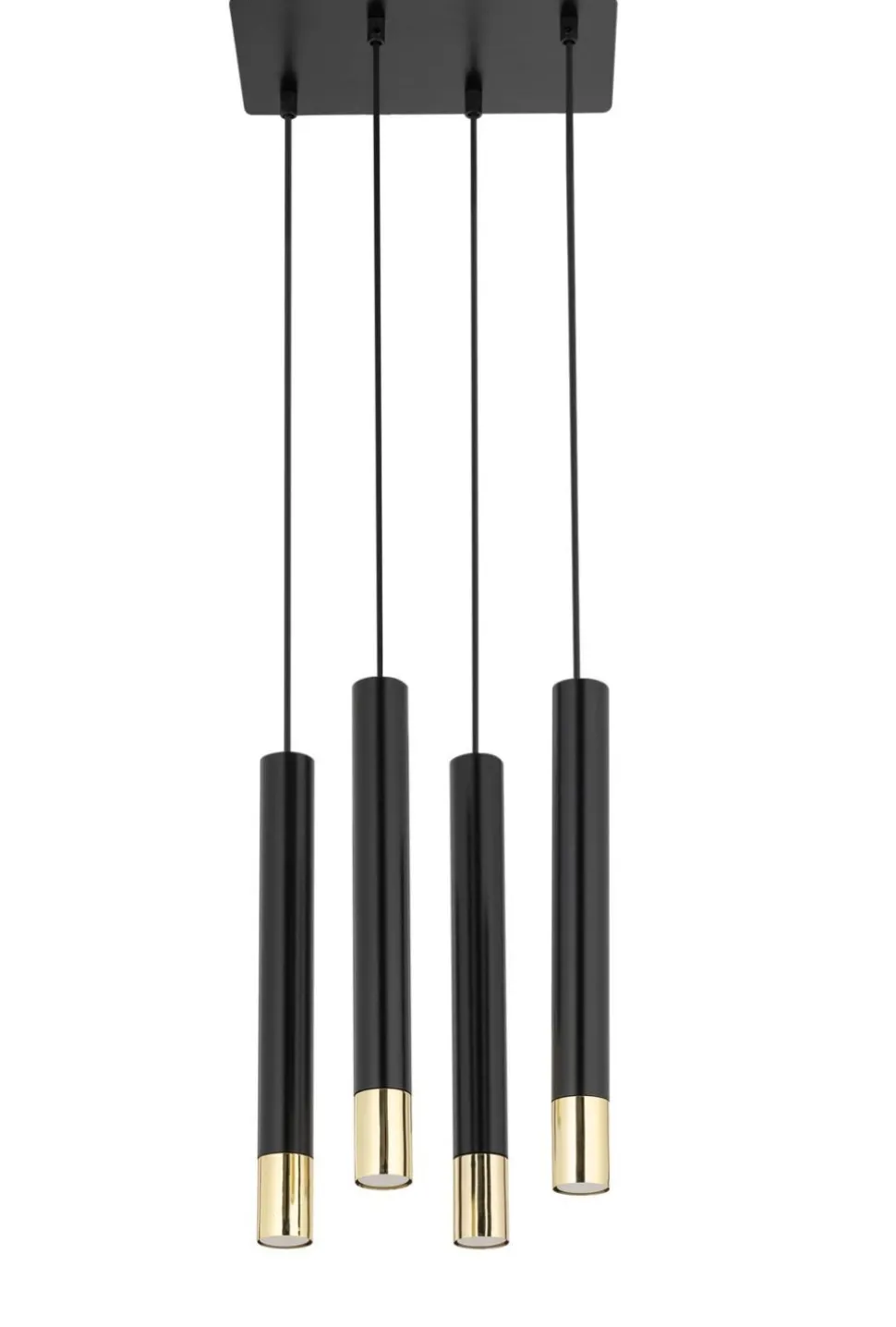 Schmale Pendelleuchte in Schwarz und Gold