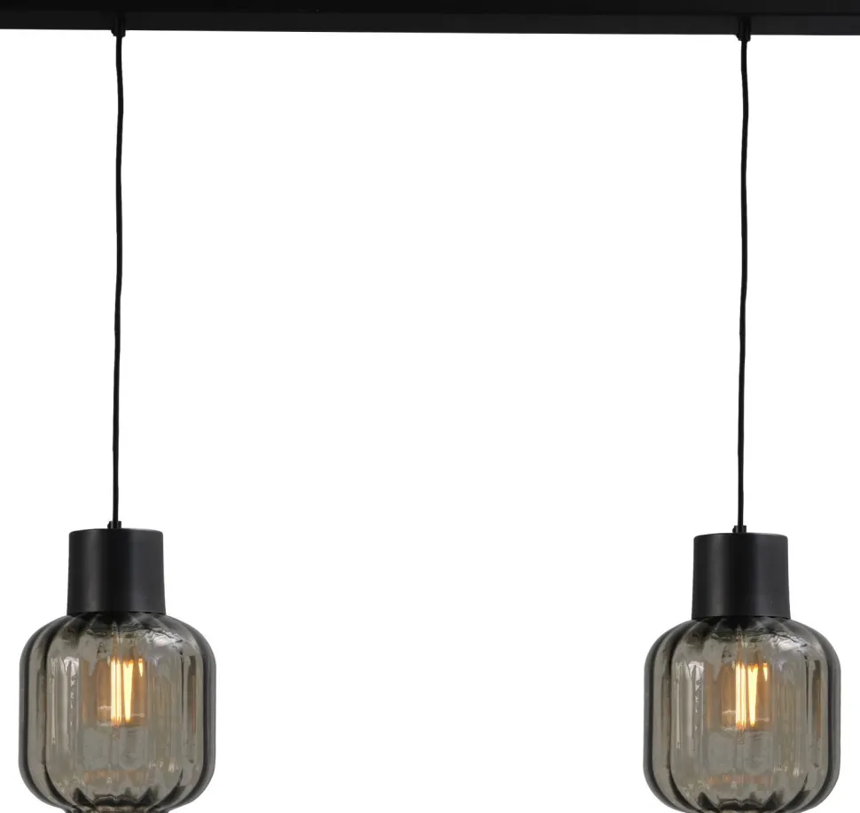 Form und Farbe verleihen den Glasschirmen einen besonderen Look, was aus der Hängelampe einen absoluten Blickfang macht