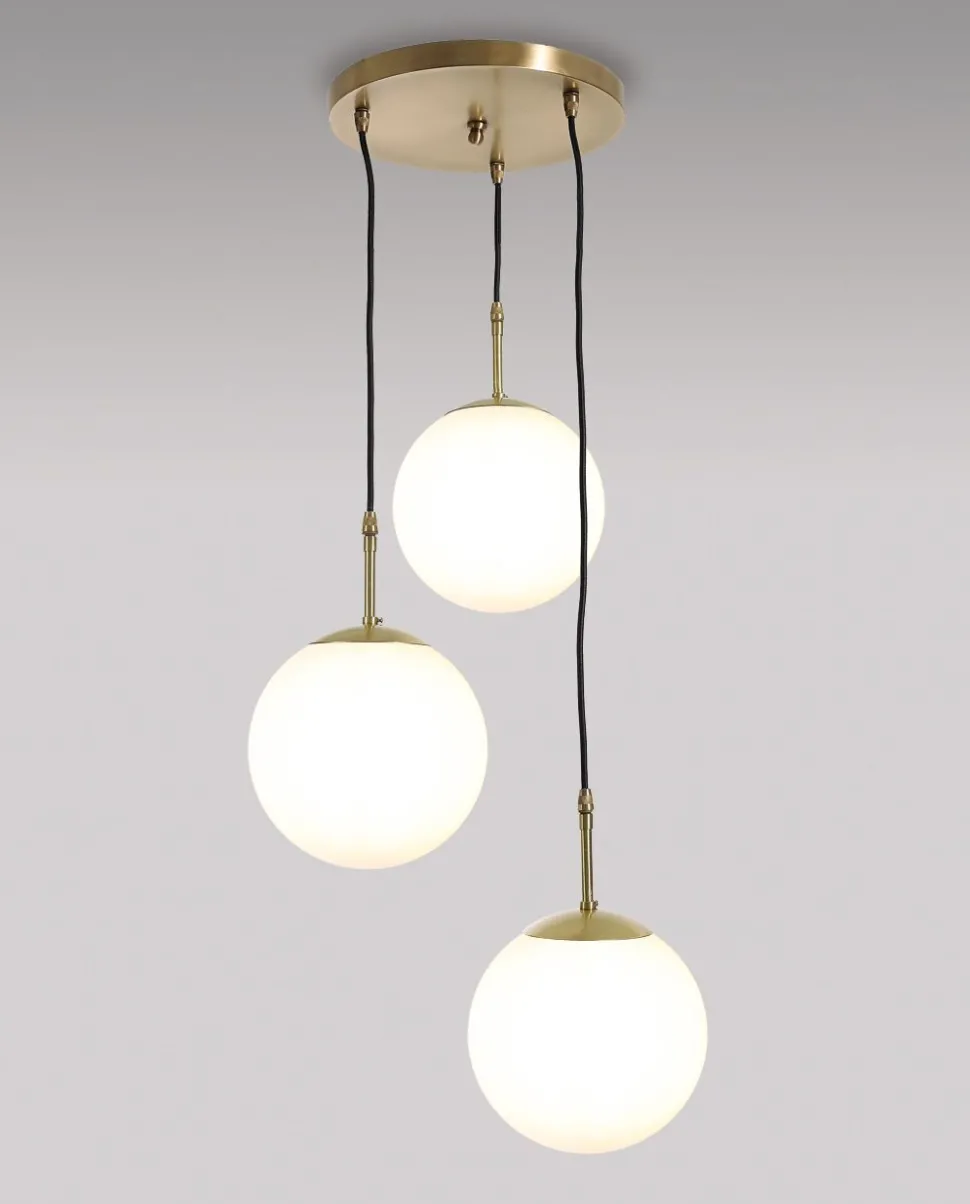 Elegante Pendelleuchte aus massivem Messing mit Glas Kugel Schirm