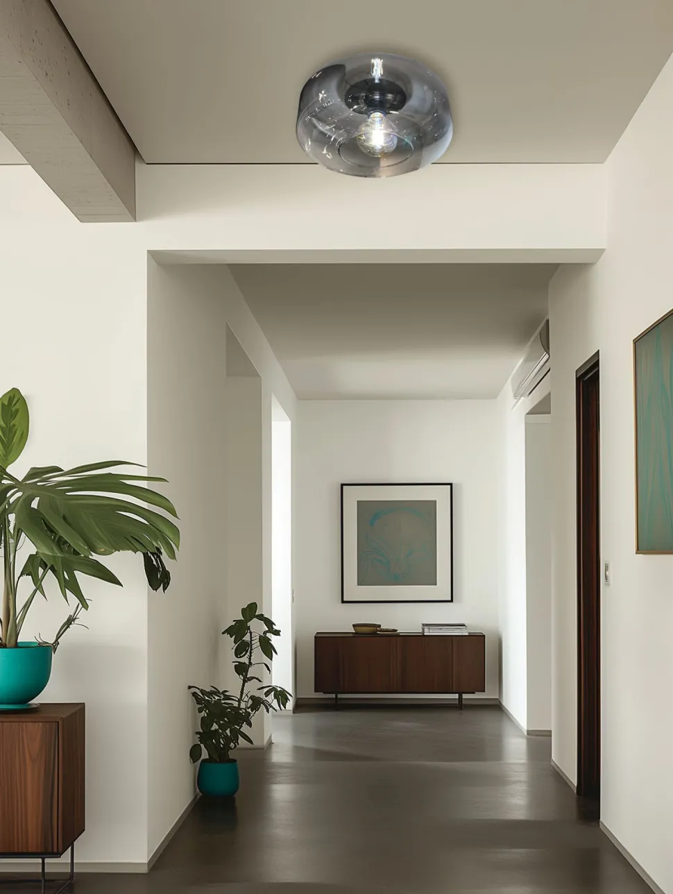 Moderne Deckenleuchte mit Glasschirm in Rauchgrau