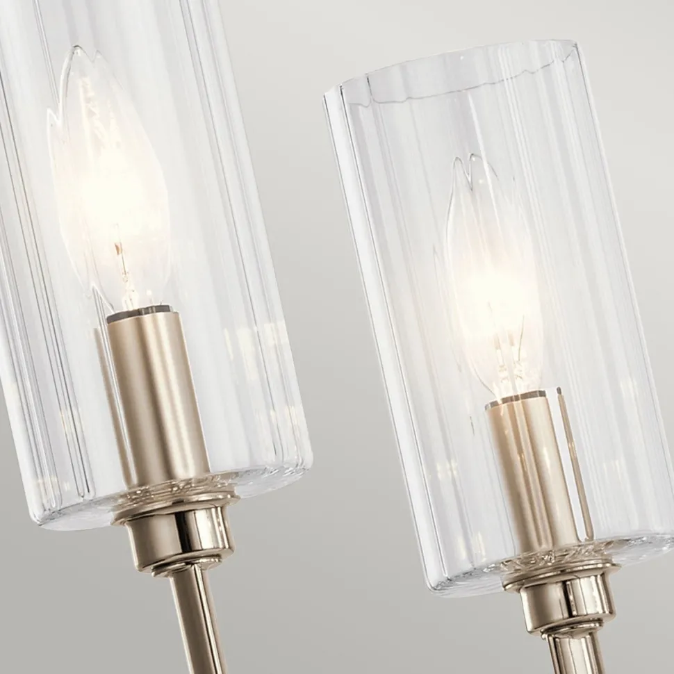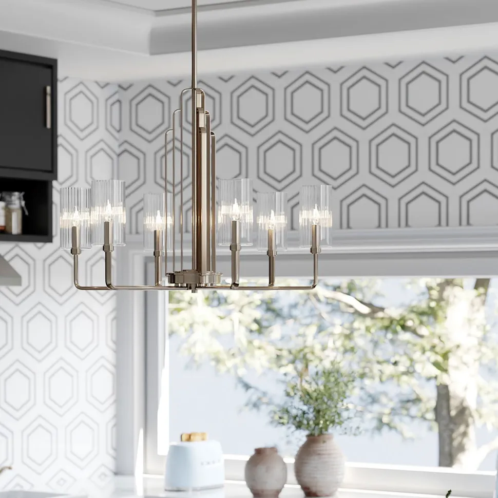 Eleganter Kronleuchter für Esszimmer und Wohnzimmer mit kunstvollen Lampenschirmen aus Riffelglas
