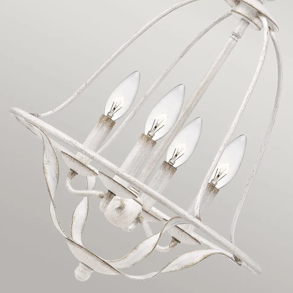 Das Shabby Weiß verleiht der Hängelampe einen antiken Charakter der perfekt in Wohnzimmer und Esszimmer zur Geltung kommt