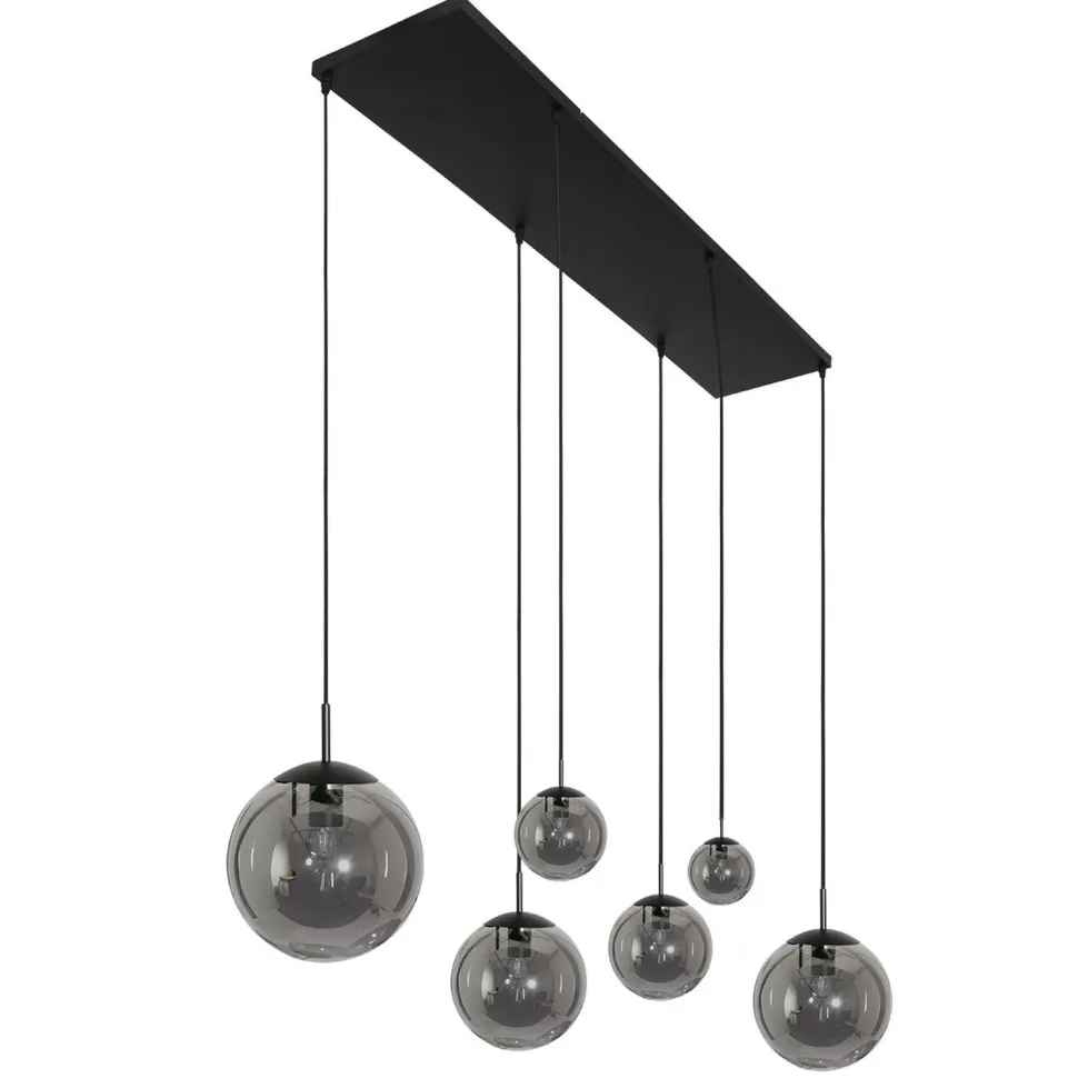 Moderne Pendelleuchte aus Metall und Glas in Schwarz und Rauchgrau