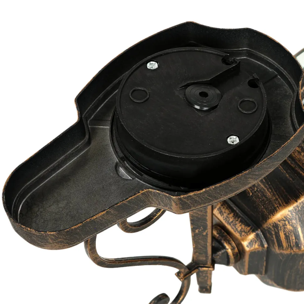 Die rustikale Außenleuchte in Kupfer Antik besteht aus witterungsbeständigem Aluminium und robustem Glas