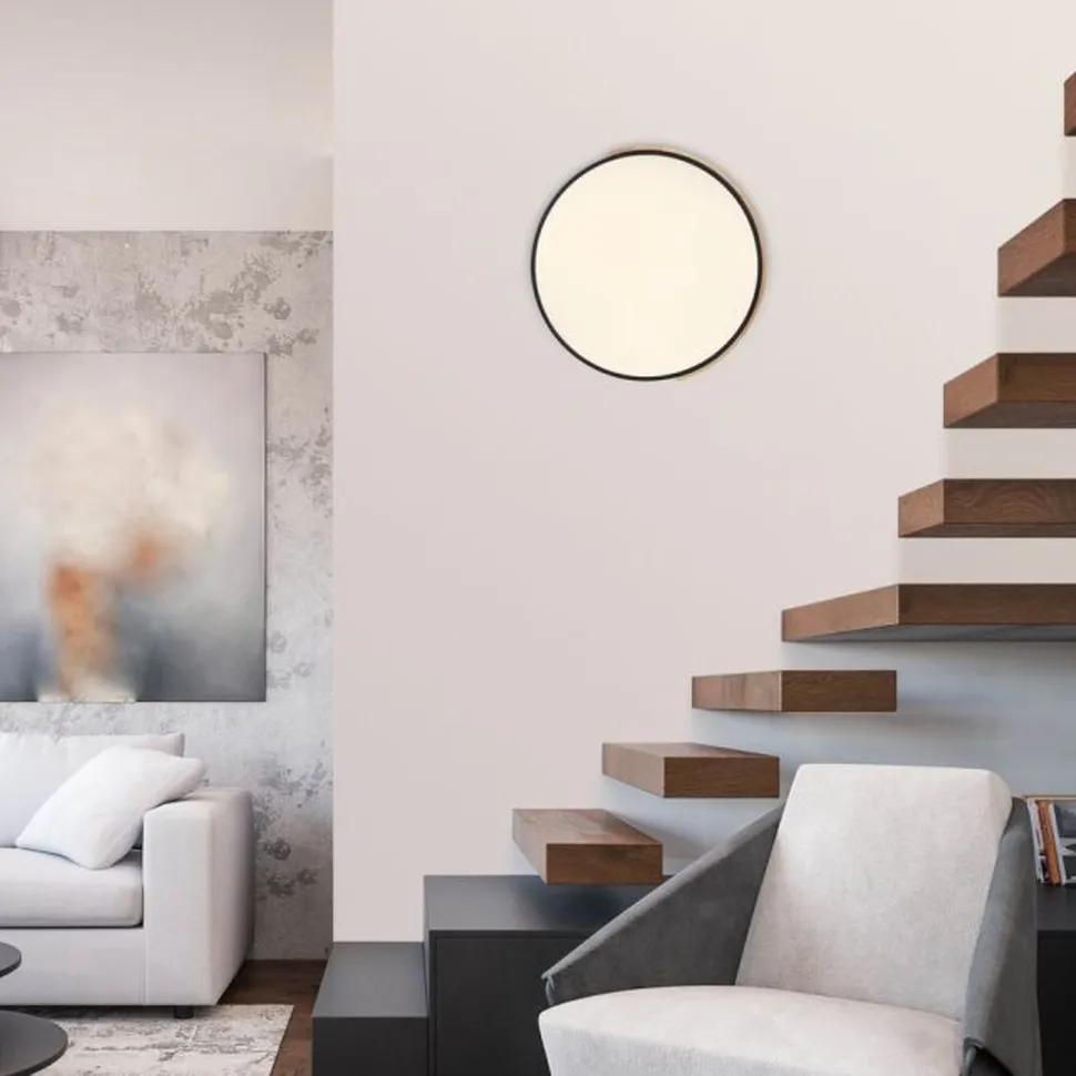 Der blendarme Kunststoffdiffusor der Deckenlampe streut das Licht sanft und weich für eine gemütliche Atmosphäre in Wohnzimmer und Schlafzimmer