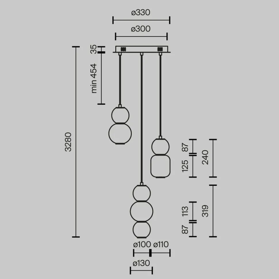 Elegante LED Pendelleuchte mit kunstvollen Kugelschirmen für Wohnzimmer und Esszimmer