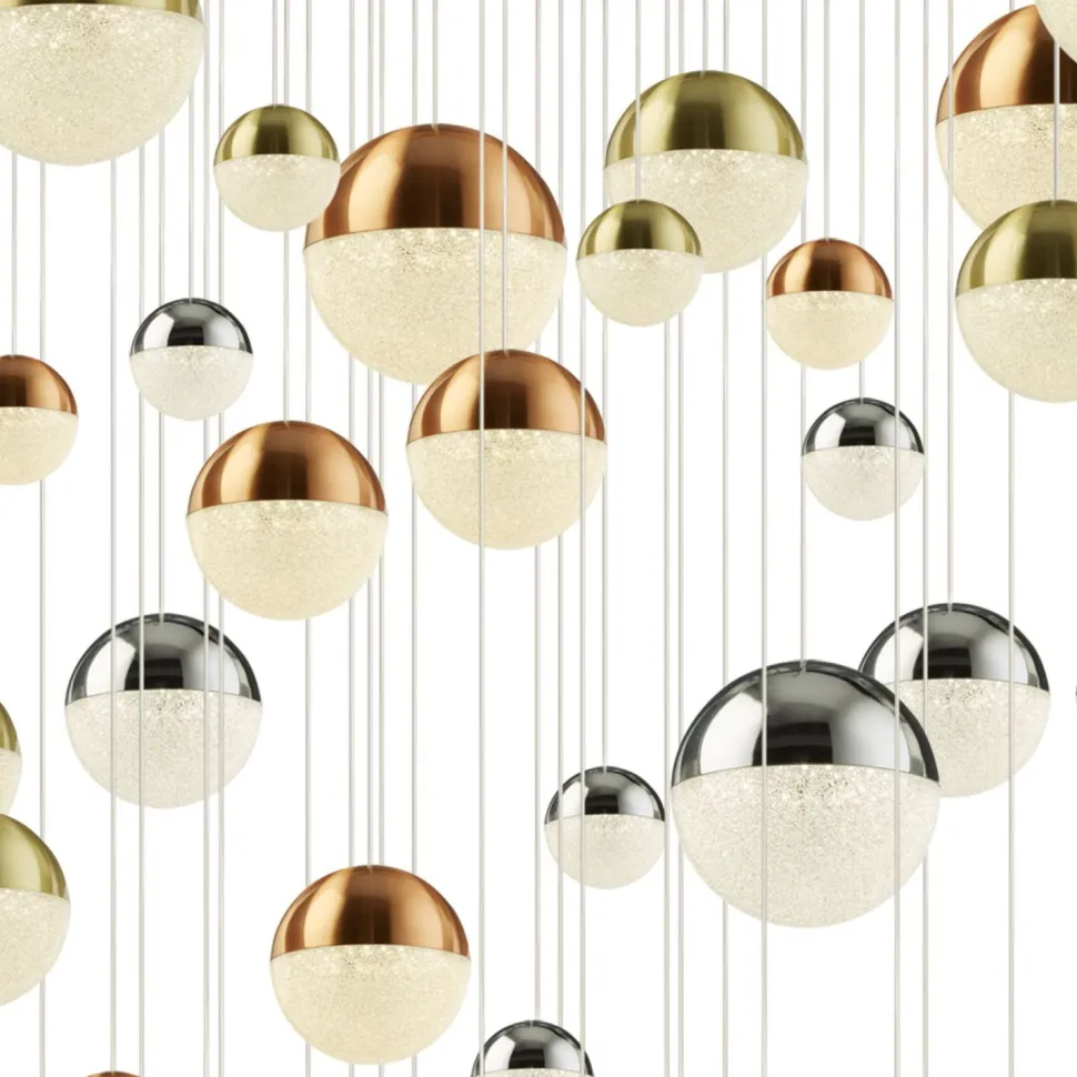Große Pendelleuchte mit farbenfrohen Kugelschirmen