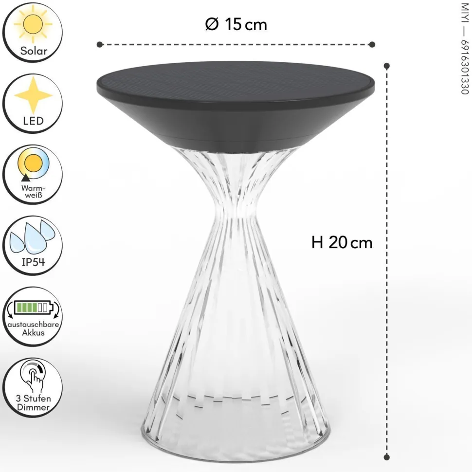 Dank Solarpanel ist die Tischlampe besonders effizient und kostensparend