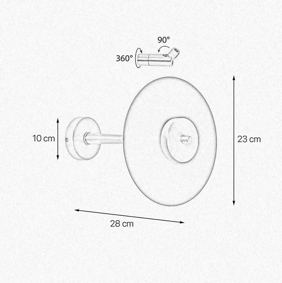 | Maße: | Breite: 230 mm | Höhe: 230 mm | Tiefe: 280 mm | Durchmesser Schirm: 230 mm | Durchmesser Sockel/Wandhalterung: 100 mm |