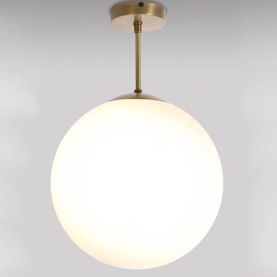 Elegante Deckenleuchte aus massivem Messing mit Glas Kugel Schirm