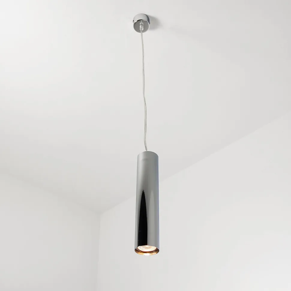 Die moderne Pendelleuchte Eye aus Metall in Chrom setzt über dem Esstisch, der Kücheninsel oder dem Tresen besonders stilvolle Akzente. Die dekorative Form der Lampe macht diese zu einem auffälligen Hingucker in Ihrem Innenbereich! Die Leuchte ist ebenfalls in Messing, Schwarz und Weiß erhältlich.