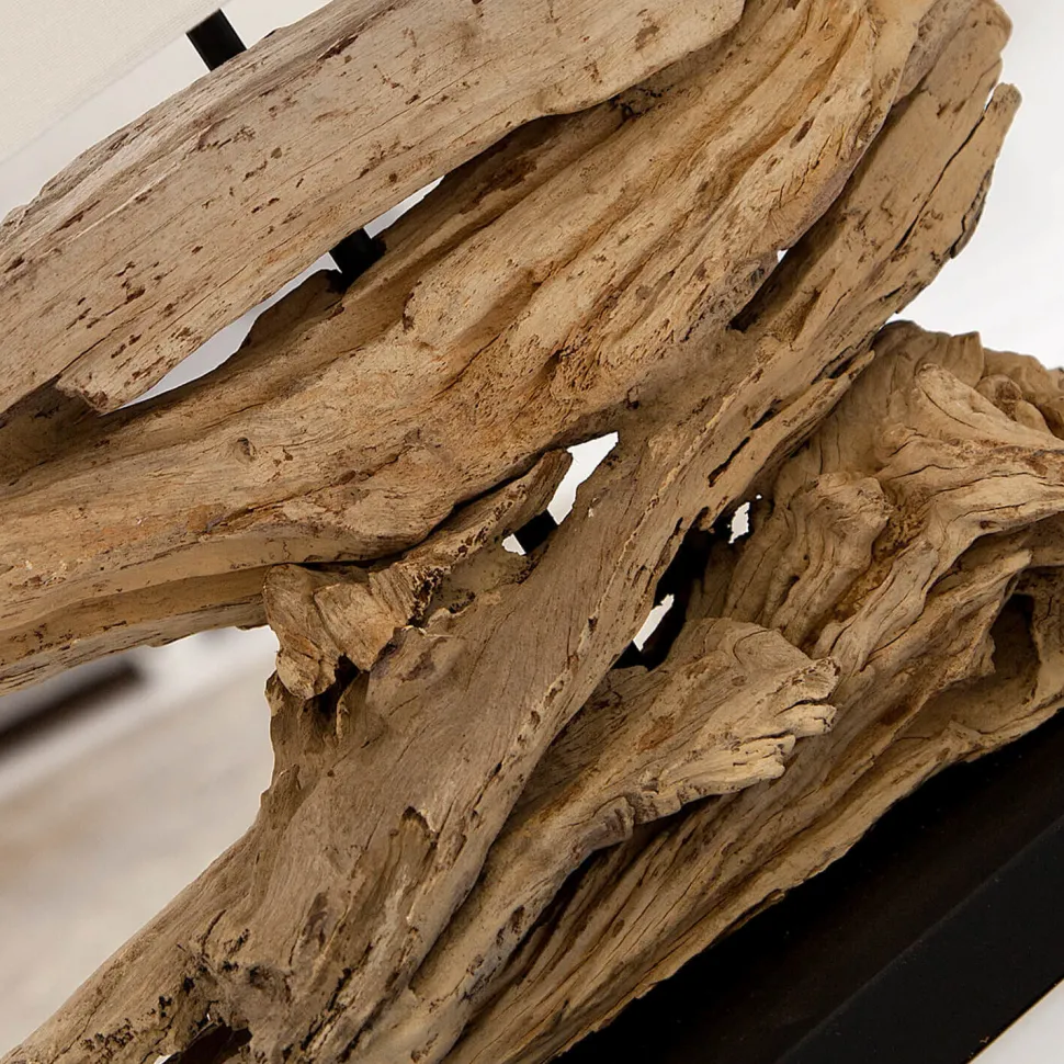 Der Sockel aus Treibholz macht jede Leuchte zu einem Unikat: Abweichungen im Aussehen können nicht ausgeschlossen werden