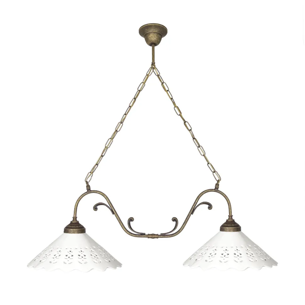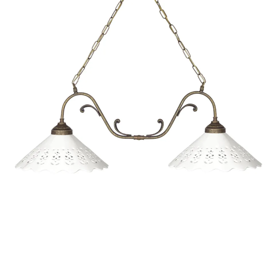 Rustikale Pendelleuchte aus massivem Messing und edler Keramik für Wohnzimmer, Esszimmer und Küche