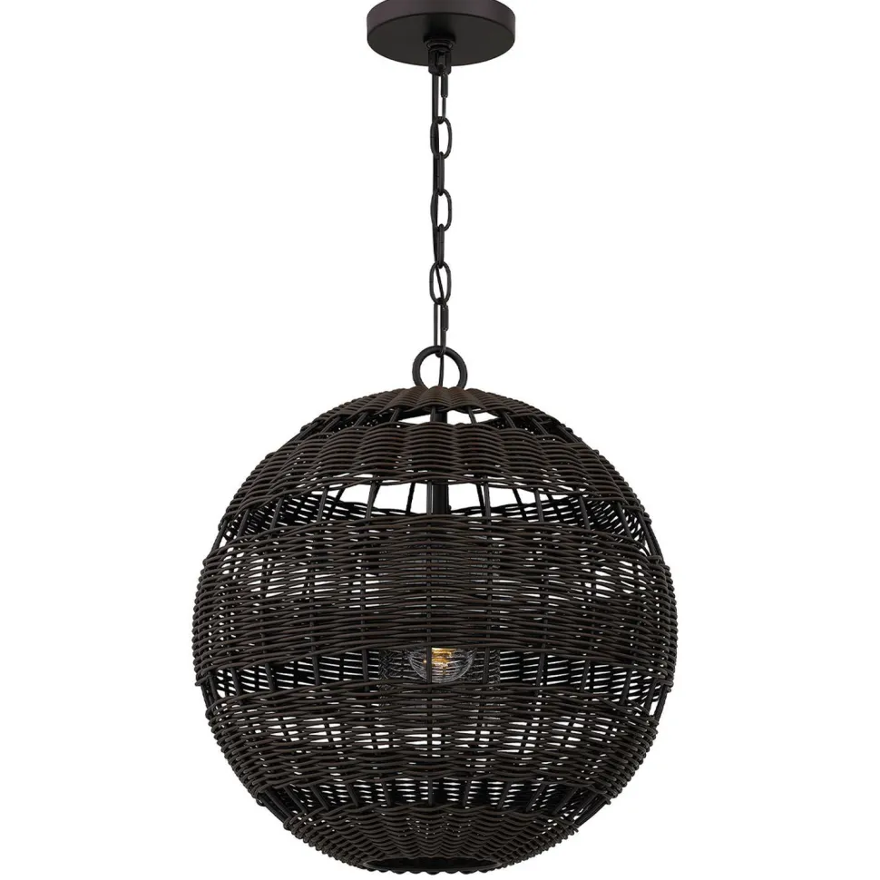 Dekorative Pendelleuchte für außen mit Kugelschirm in Schwarz