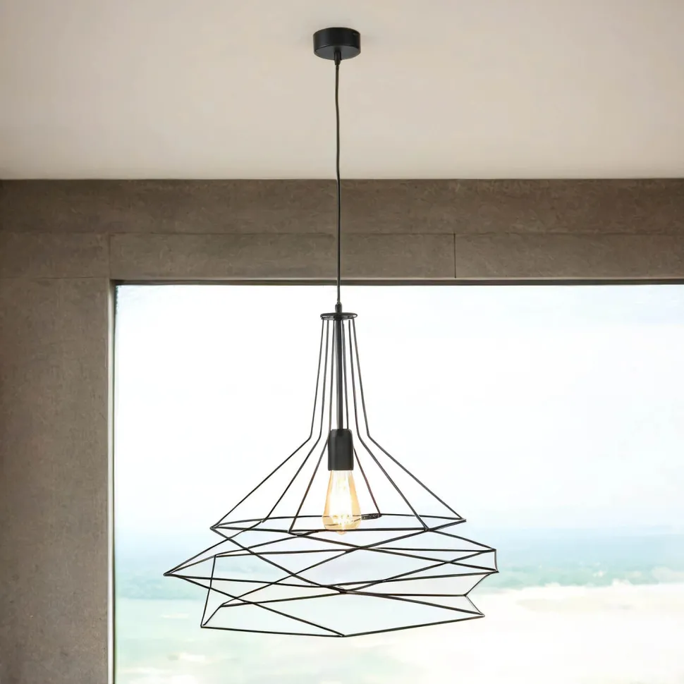 Moderne Pendelleuchte mit Draht Schirm in Schwarz