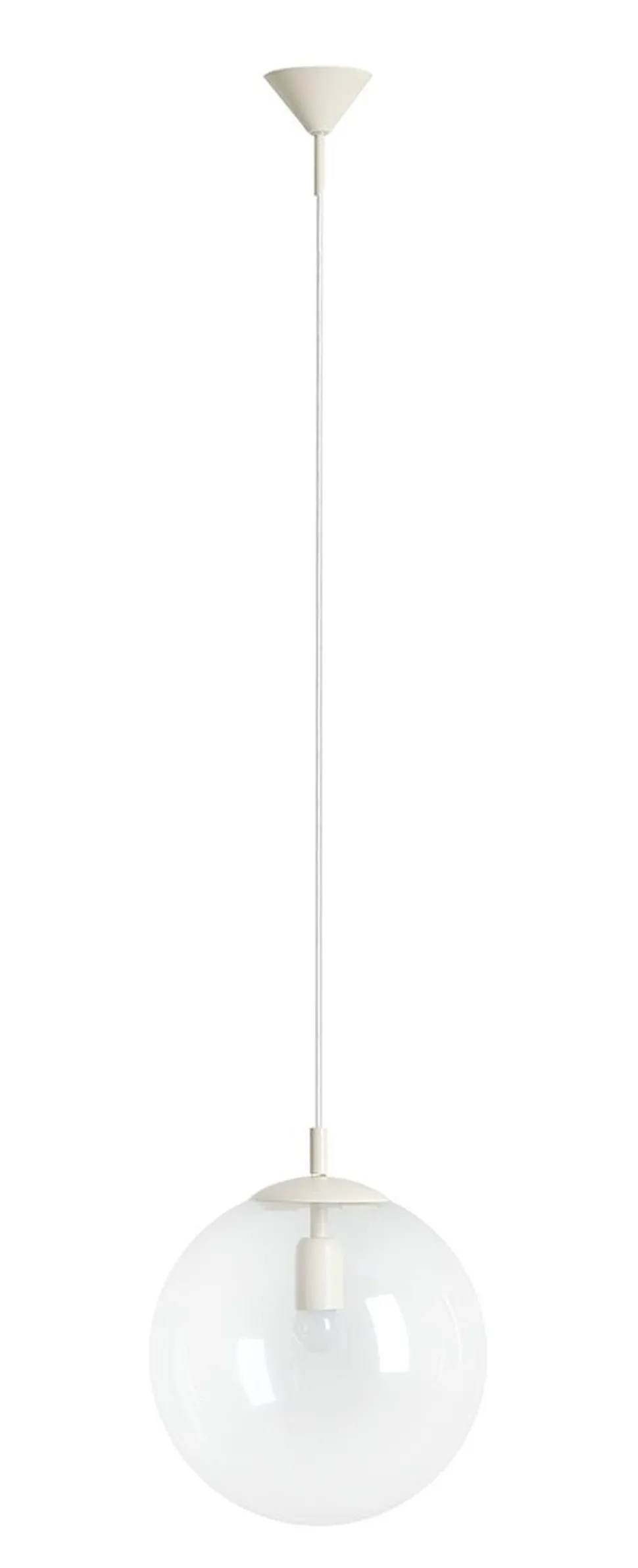 Der klare Glas-Schirm der Pendelleuchte im Kugel Design sorgt für einladendes, breitgestreutes Licht – perfekt als auffälliges Highlight im Wohnzimmer und Esszimmer über dem Esstisch