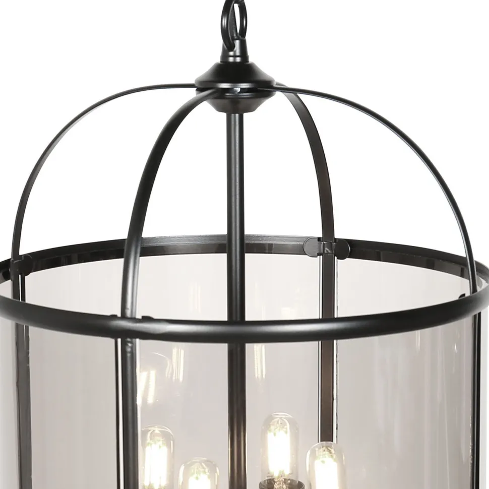Klassische Pendelleuchte aus Metall und Glas in Schwarz und Rauchgrau