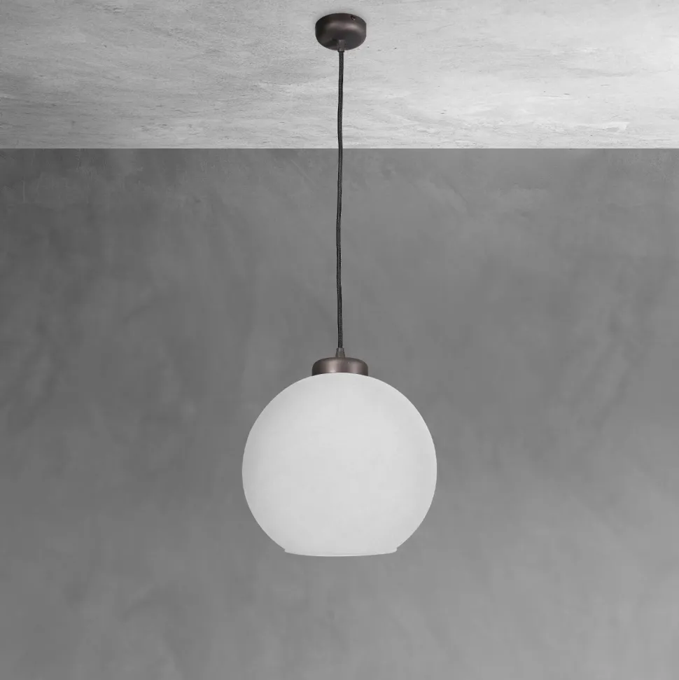 Kleine Pendelleuchte aus massivem Messing mit Kugelschirm aus Glas