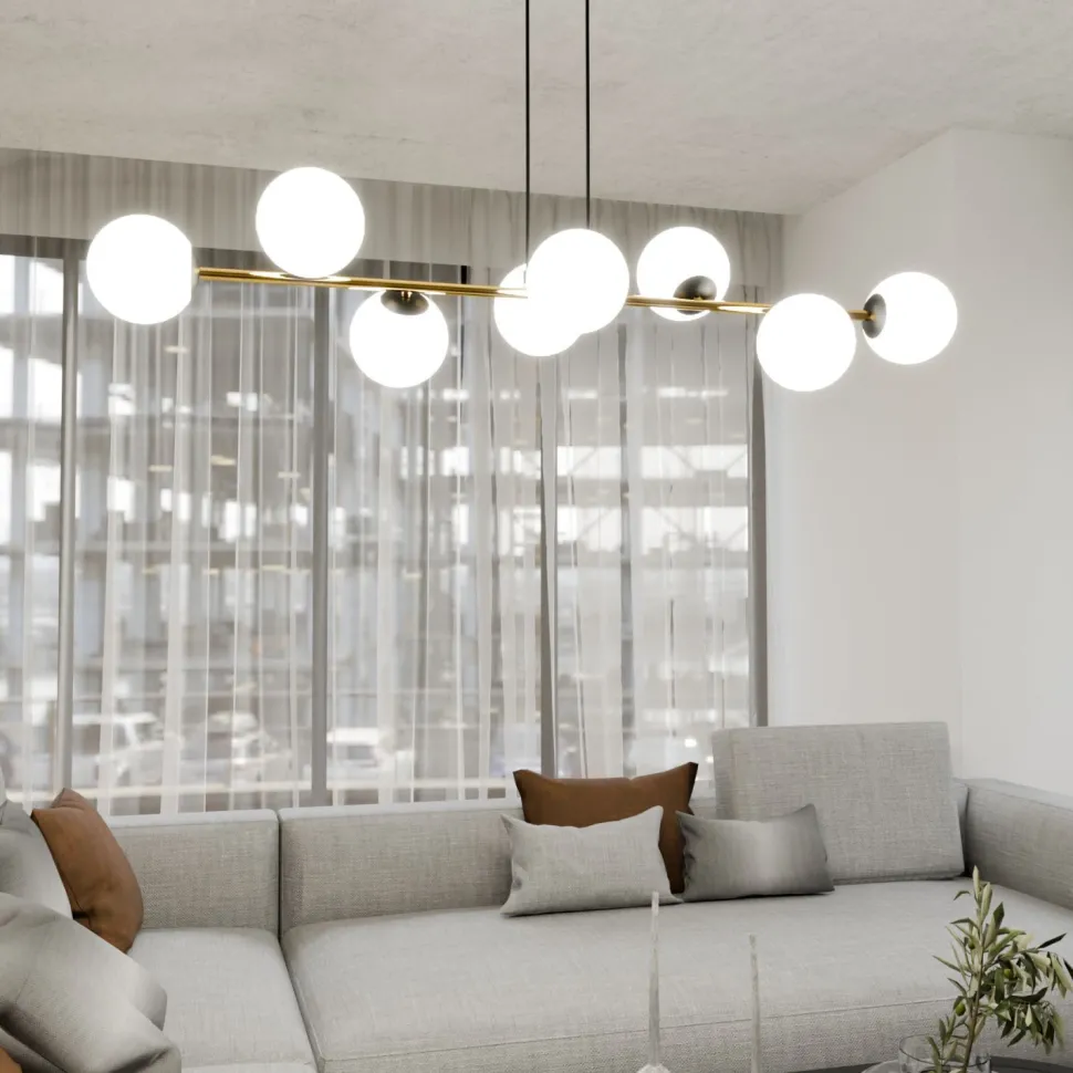 Die Kugelschirme erlauben eine blendarme Lichtstreuung – ideal in Wohnzimmer und Esszimmer