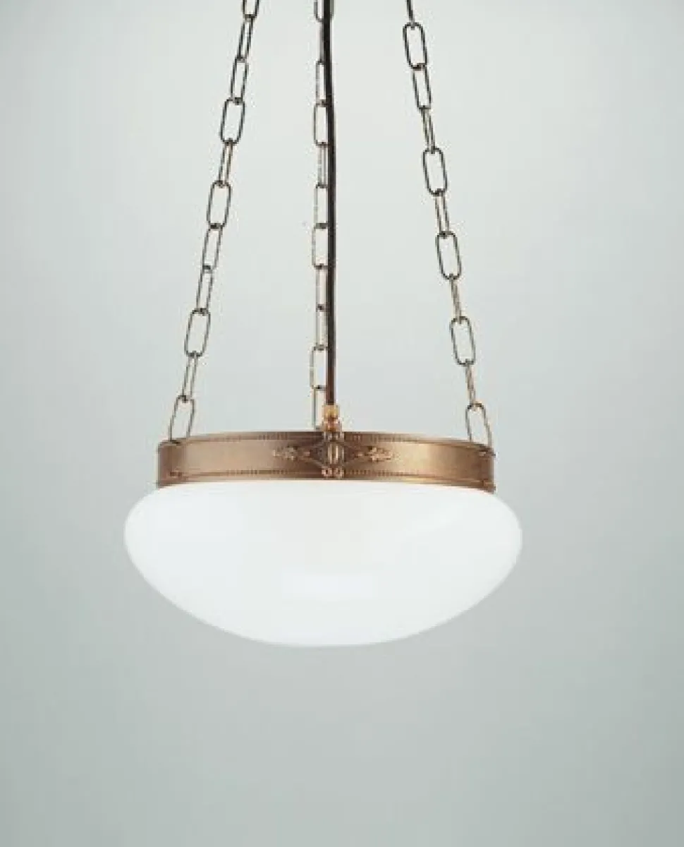 Jugendstil Hängelampe aus Messing und Glas