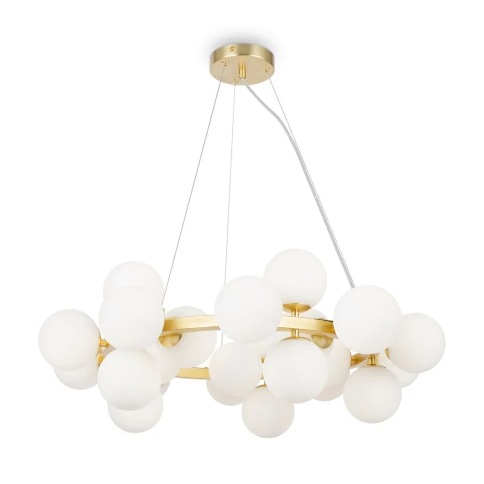 Große Pendelleuchte mit Kugelschirmen satiniertem Glas