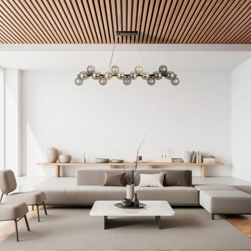 Große Pendelleuchte mit Kugelschirmen aus Rauchglas