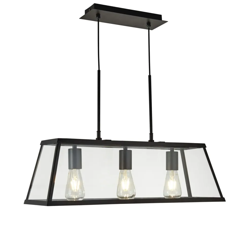 Das klare Glas sorgt für eine direkte Beleuchtung und macht aus der Hängelampe einen besonderen Blickfang in Wohnzimmer, Esszimmer und Küche