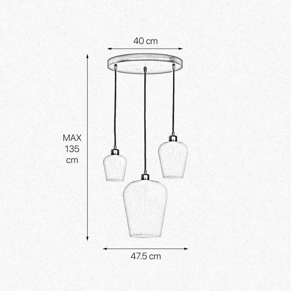 | Maße: | Breite: 475 mm | Hängetiefe: 700-1350 mm | Länge: 475 mm | Durchmesser: 475 mm | Höhe Schirm: 135 mm | Durchmesser Sockel/Wandhalterung: 400 mm |