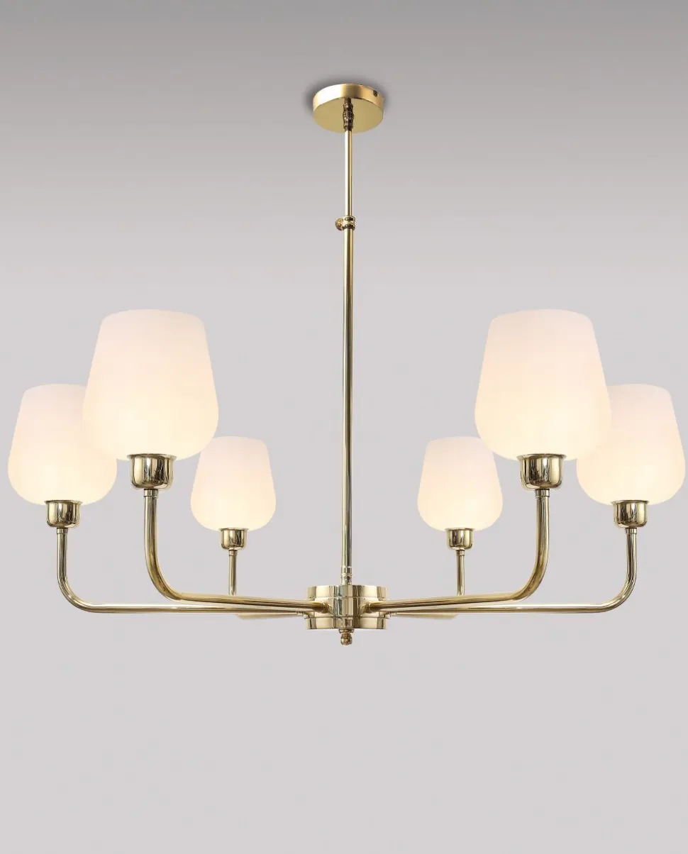 Eleganter Messing Kronleuchter mit Schirm aus satiniertem Glas