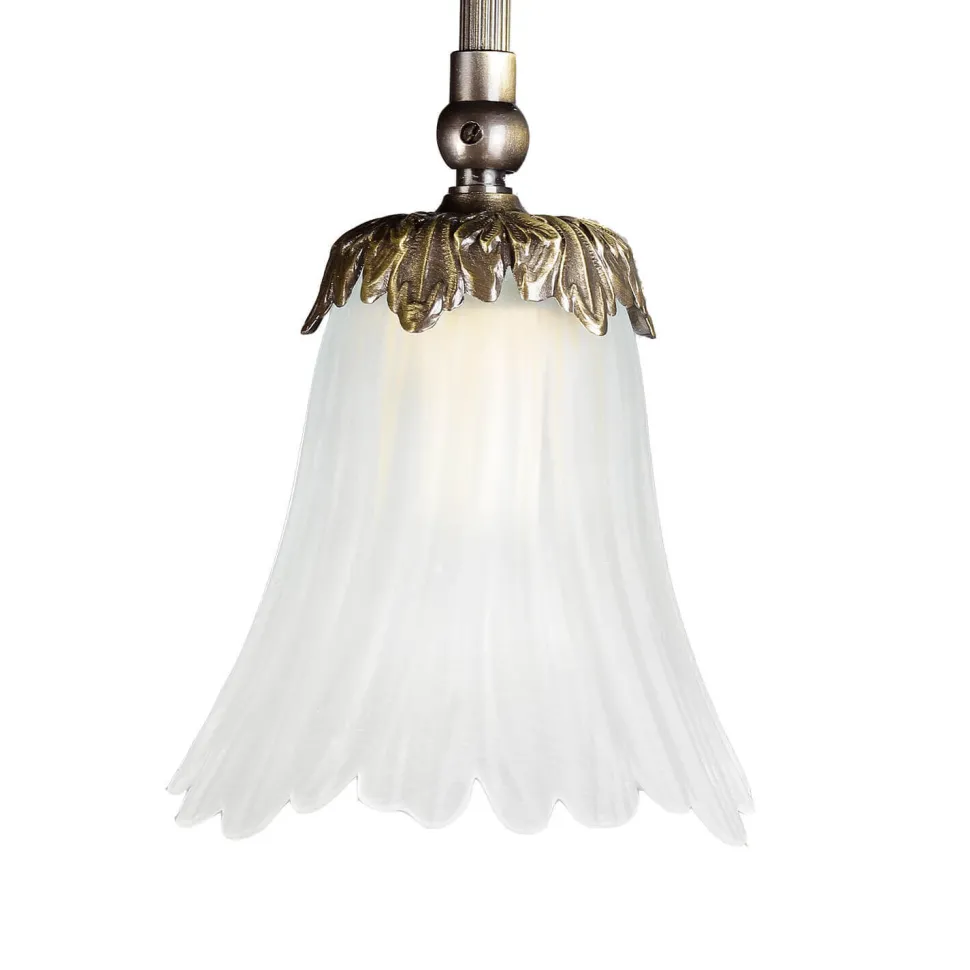 Floral Leuchte in Bronze hell glänzend, Weiß aus echtes Messing, Glas milchig