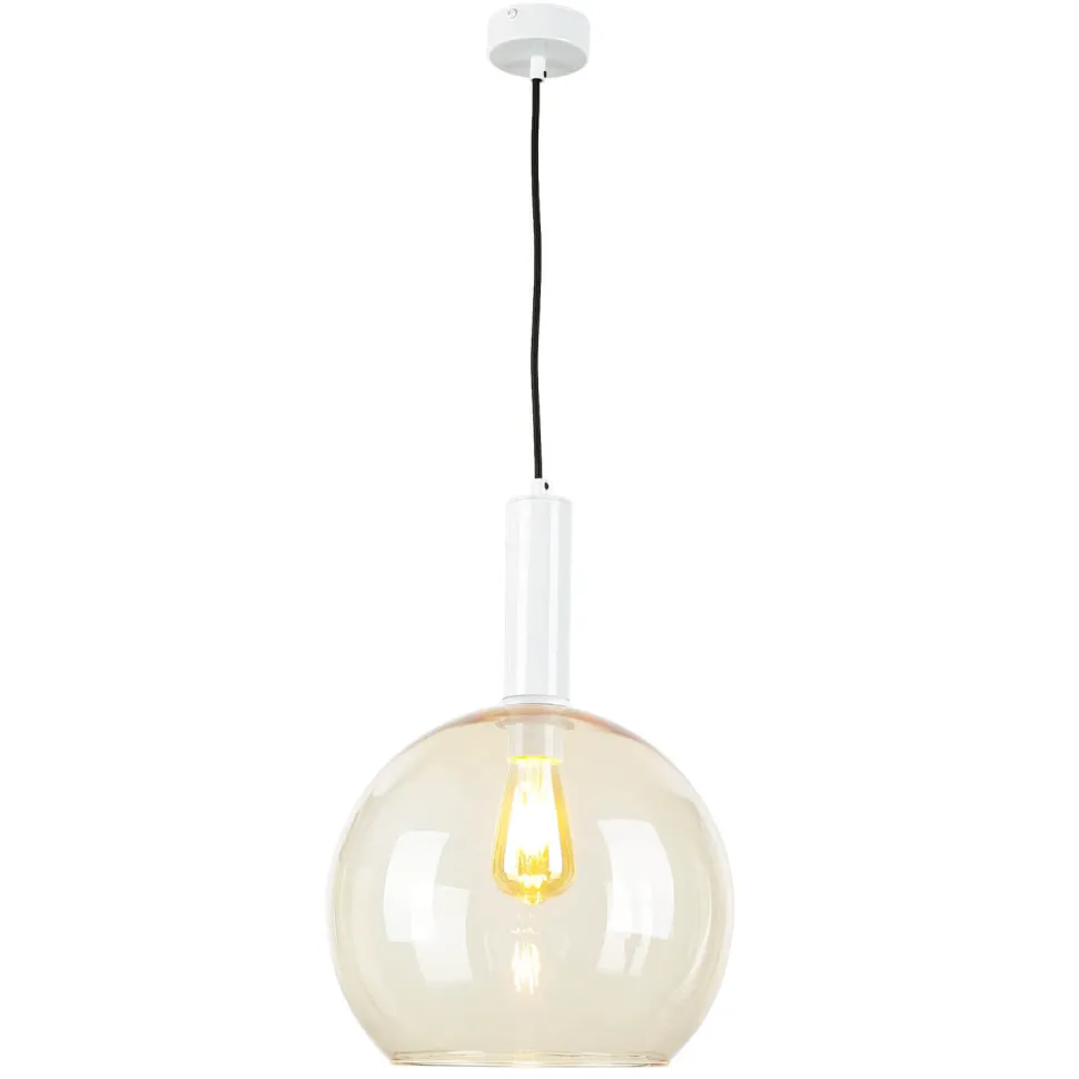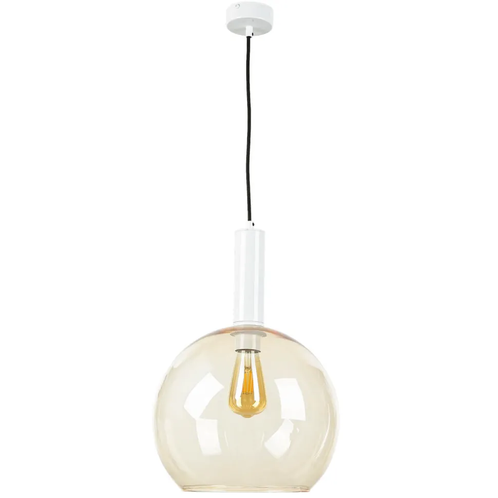 Dezente Pendelleuchte mit durchscheinendem Kugel Glas Schirm in Bernstein