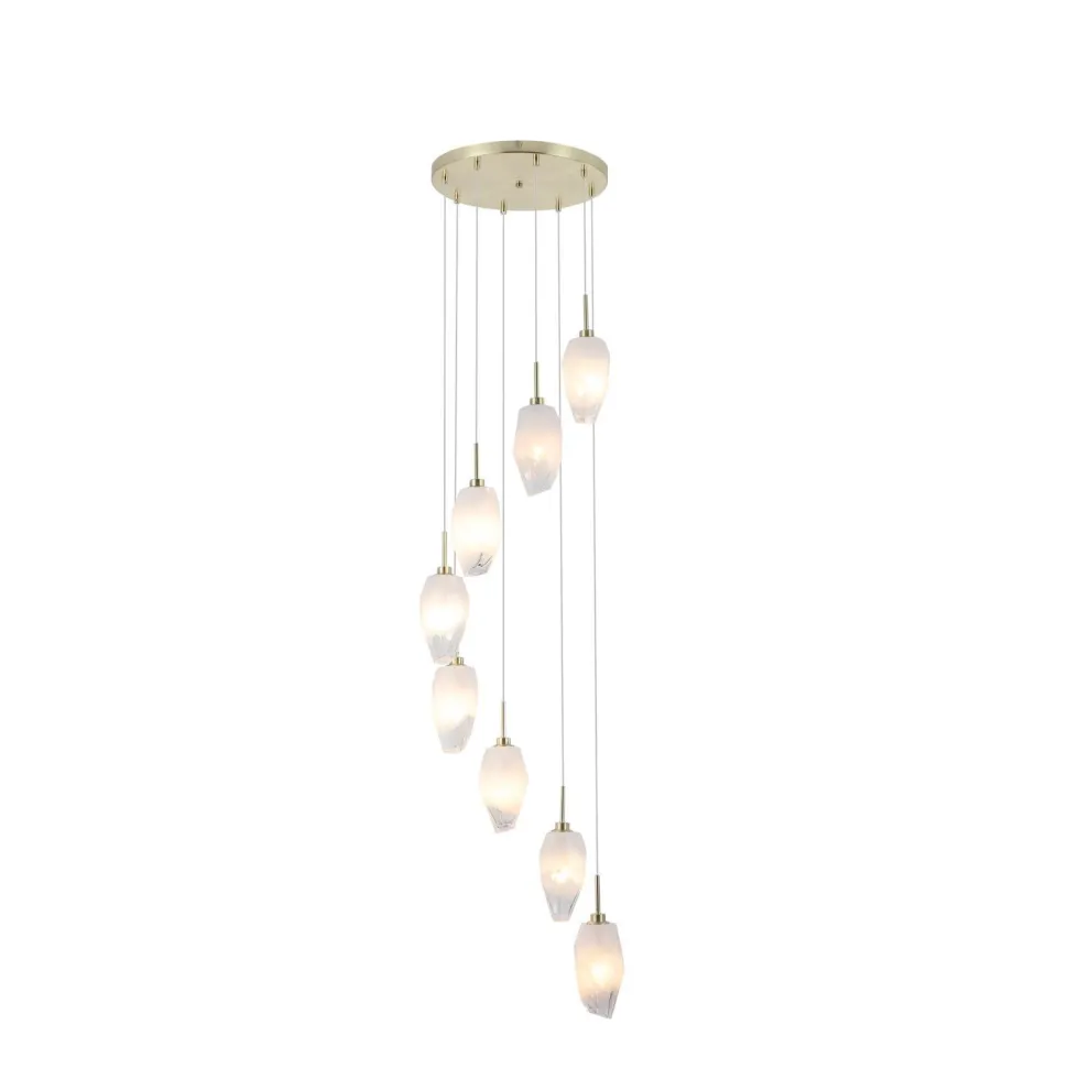 Moderne Pendelleuchte aus Stahl und Glas in Messing