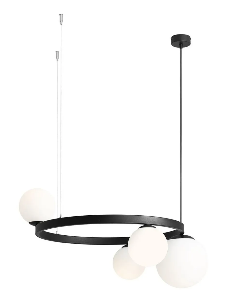 Moderne Hängelampe aus Metall und Glas in Schwarz und Weiß
