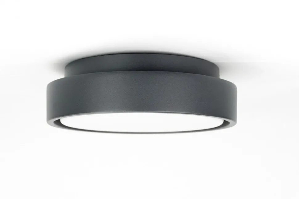 Zeitlose LED Deckenlampe für Außen aus Aluminium und Kunststoff in Dunkelgrau