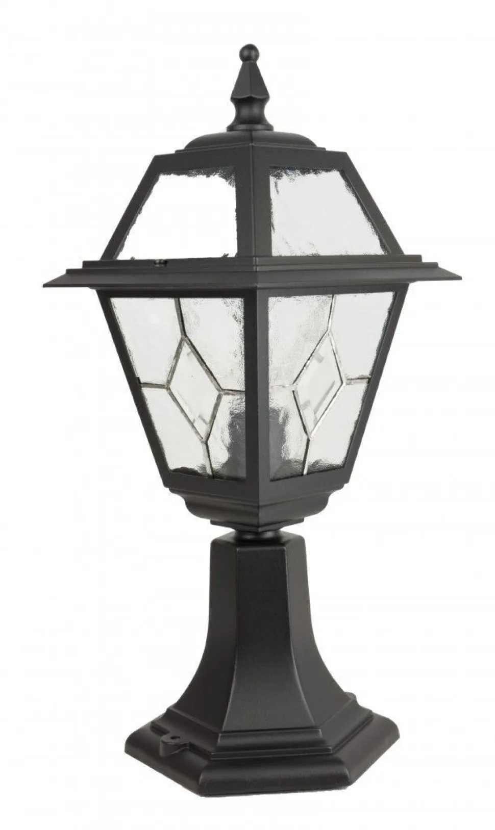 Das robuste Ornamentglas erinnert an Kirchenfenster und sorgt für einen nostalgischen Lichtakzent