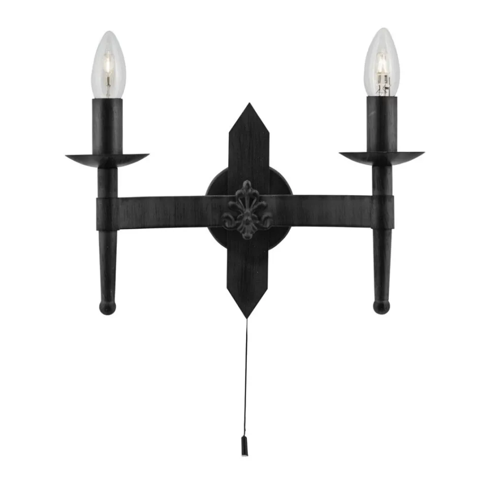 Die Farbe betont den Look eines schmiedeeisernen Wandleuchters aus längst vergangener Zeit