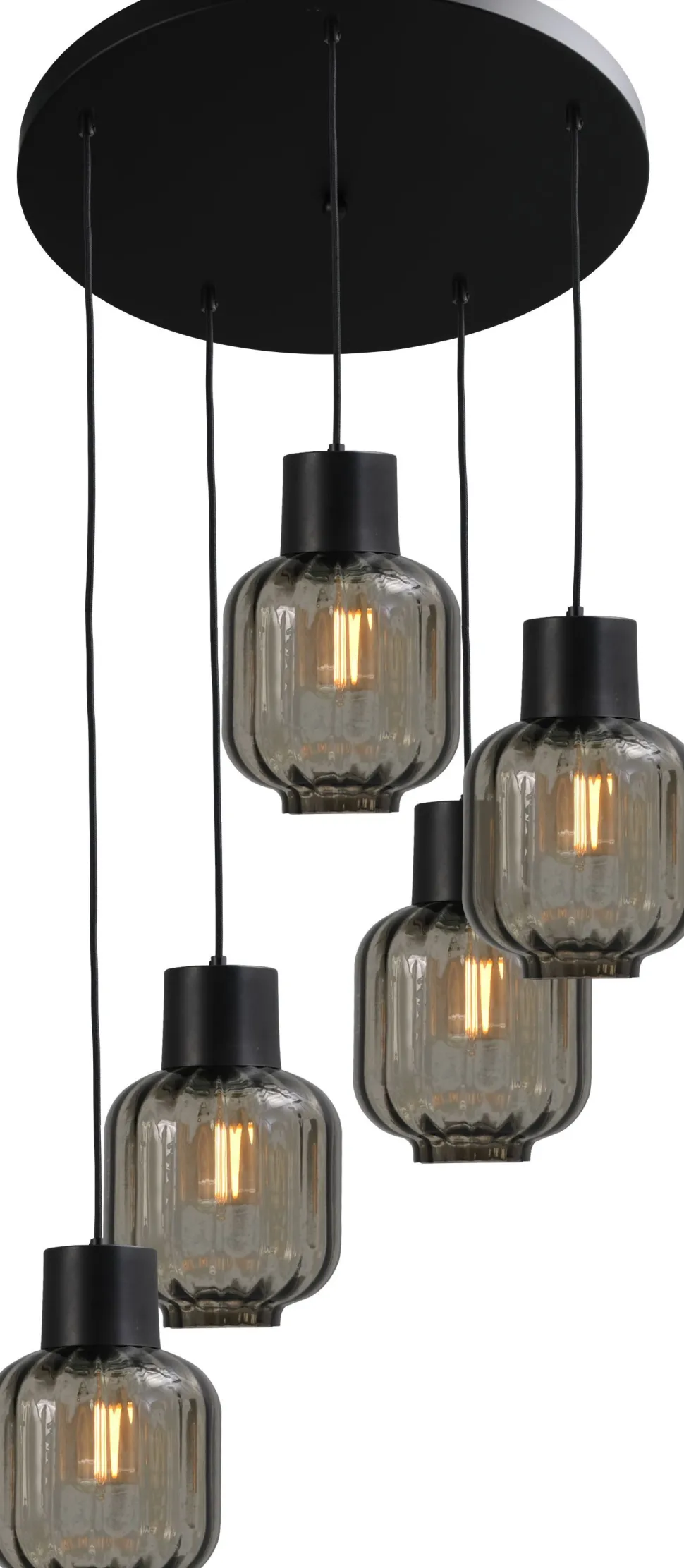 Form und Farbe verleihen den Glasschirmen einen besonderen Look, was aus der Hängelampe einen absoluten Blickfang macht