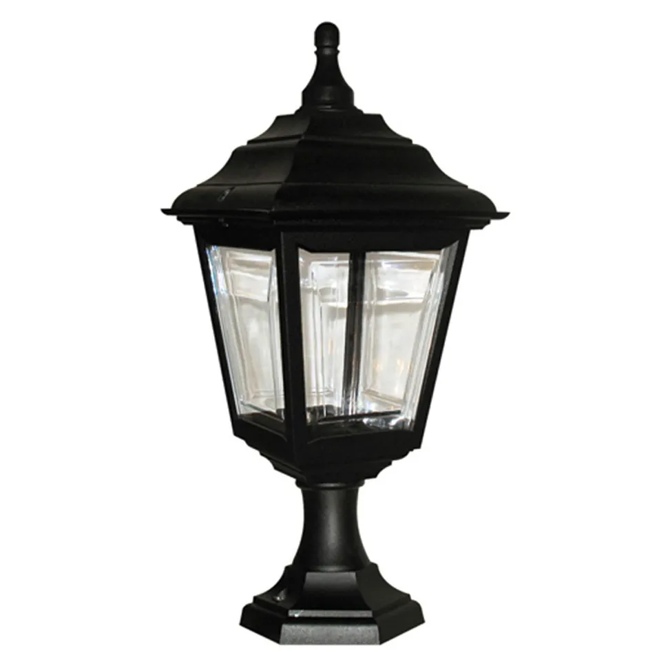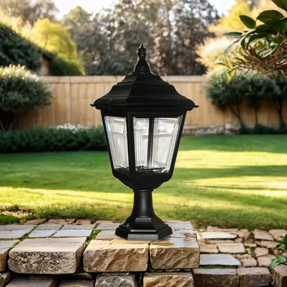 Die klaren Scheiben erlaubt eine großzügige Beleuchtung zu allen Seiten – ideal als Gartenlampe