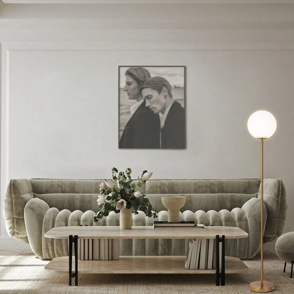 Der Kugelschirm aus Glas sorgt für eine blendarme Lichtstreuung – ideal neben dem Sofa