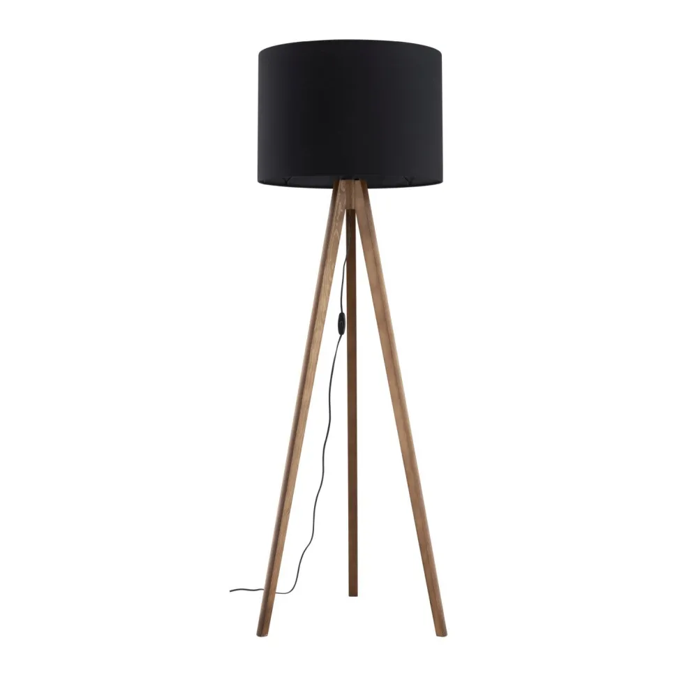 Das Dreibein Gestell aus Holz verleiht der Stehleuchte ein wohnliches Flair und passt perfekt neben das Sofa